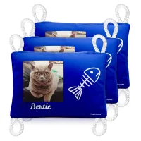 Photo Pet Blankets featuring a photo of your cat or rabbit with optional personalised text in a range of bright colours and optional pet icons.