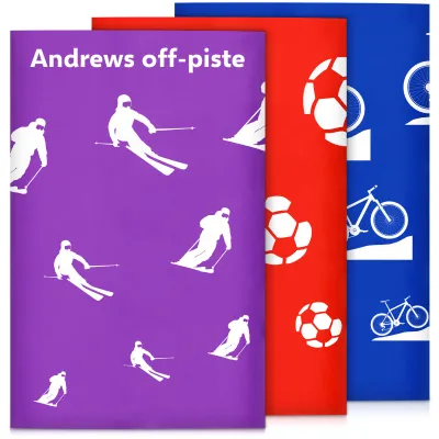 Our most popular and historic Face Covering is our Personalised Snood. This snood, also known as Face Gaiters is a subular piece of fabric that can be worn around the neck, over the head or of course to cover your mouth and nose. These snoods come in a range of vivid fabric colours and have sporting icons on them and can also be personalised as a sporting gift with the text or slogan of your choice.